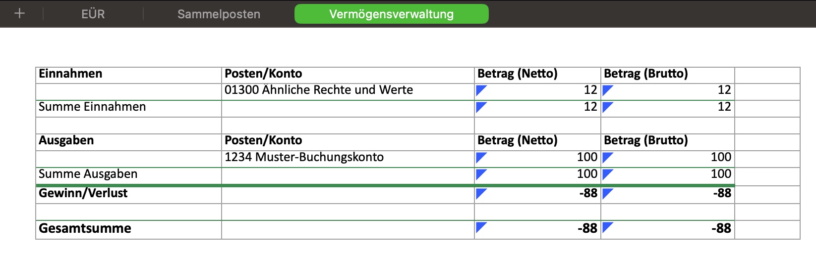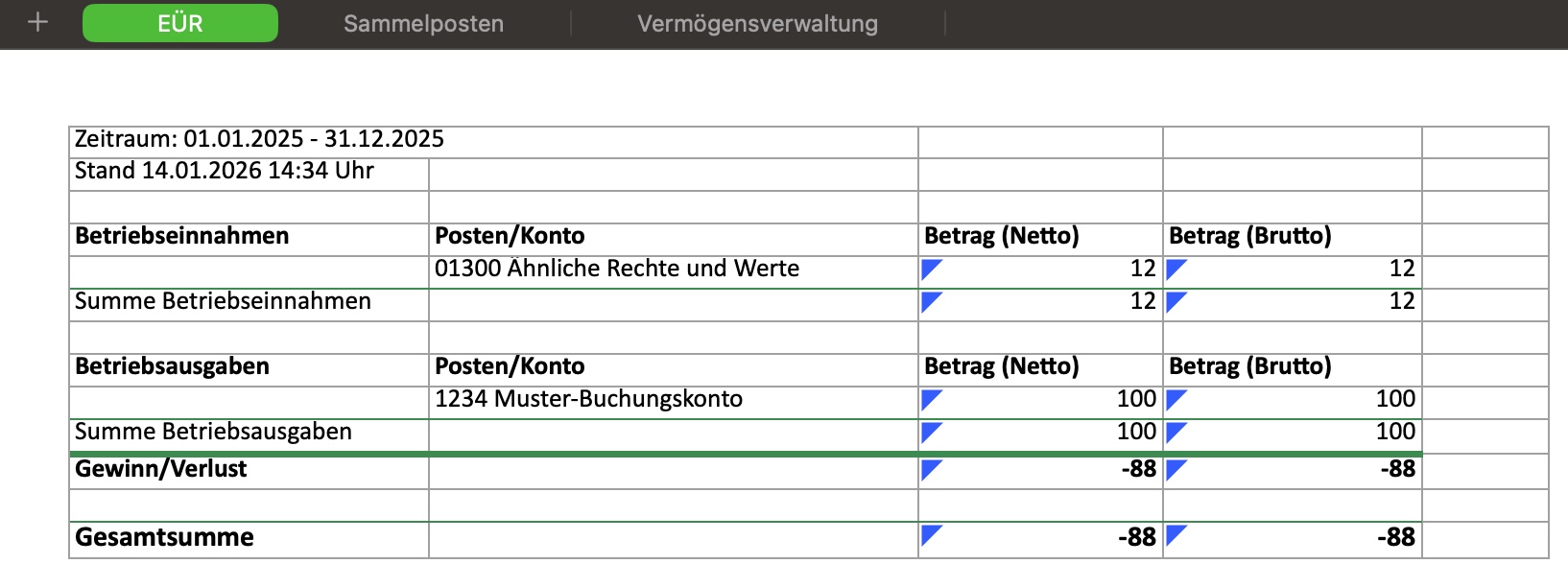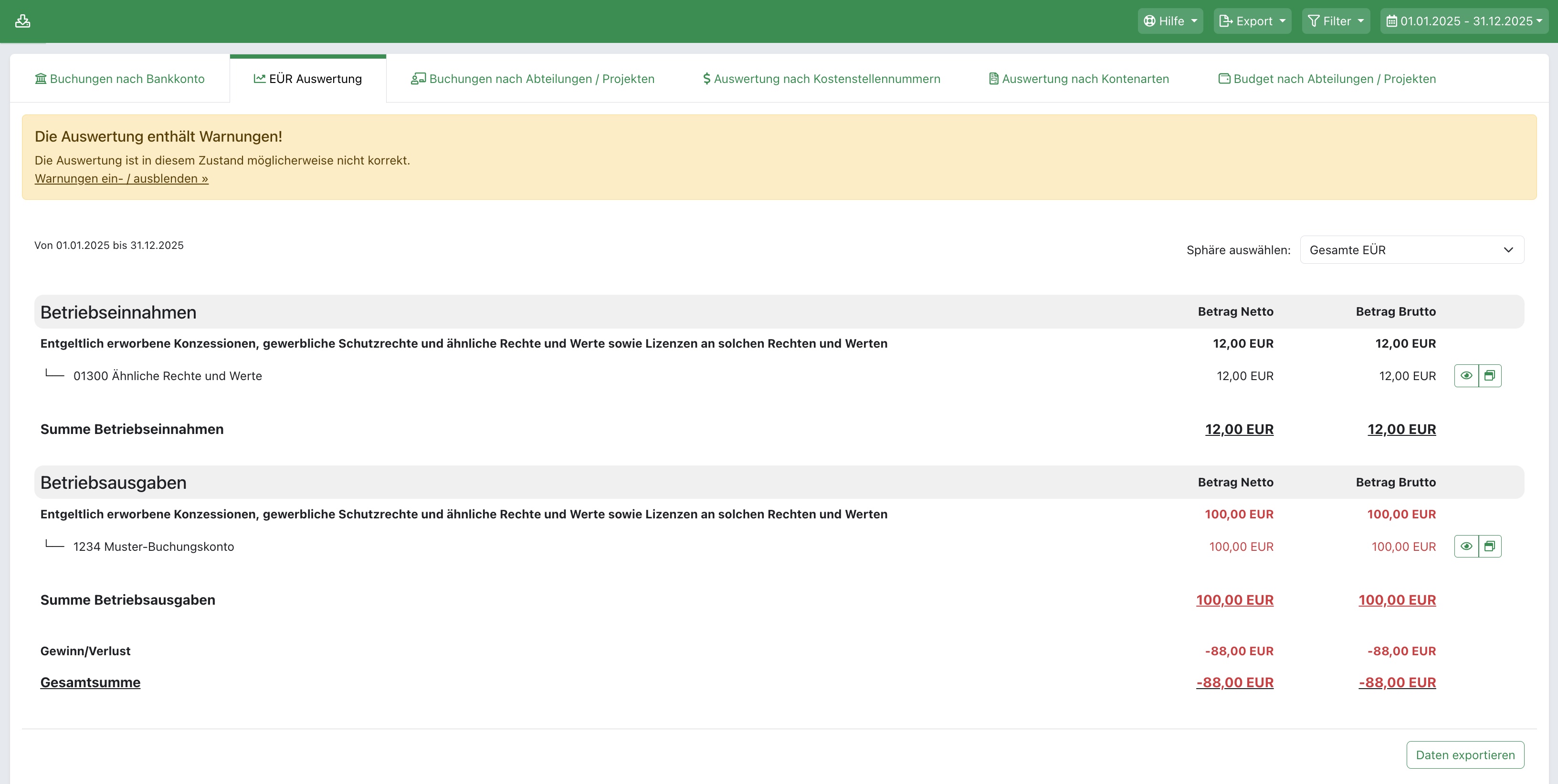 6.3.3 EÜR Auswertung (Einnahmen-Überschuss-Rechnung)