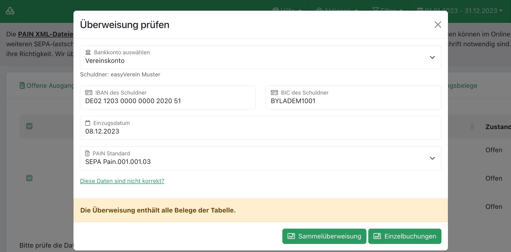 Aus easyVerein erzeugte SEPA Überweisungsdateien werden nicht automatisch an eure Bank übermittelt.