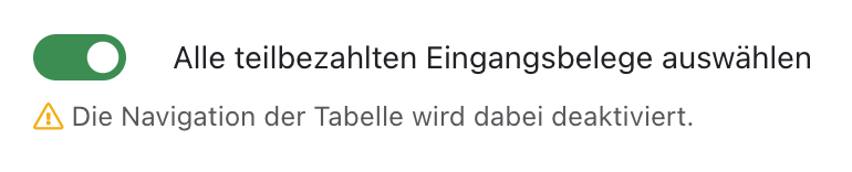 Beachtet, dass bei dieser Auswahl das Abwählen einzelner Belege nicht möglich ist.