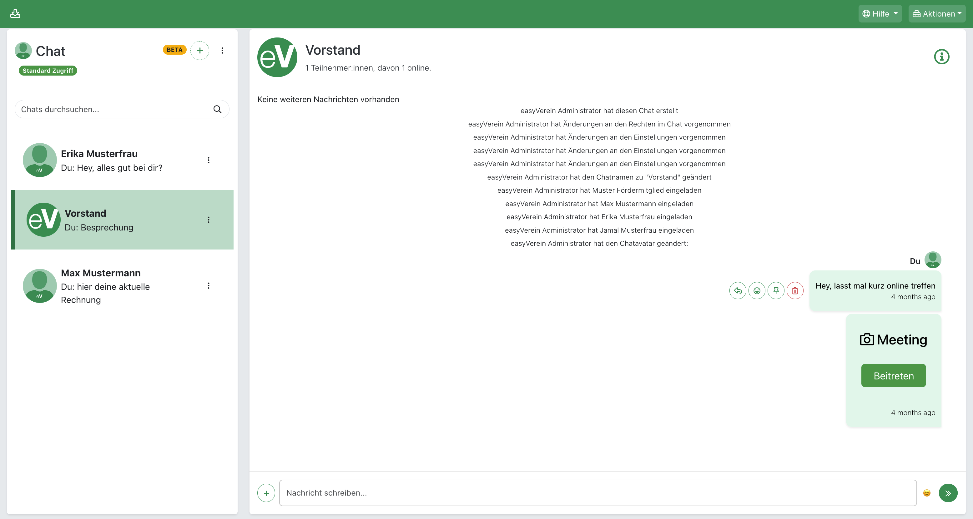 Gechattet werden kann über die Administratoroberfläche, im Browser-Mitgliederbereich und natürlich auch in unserer easyVerein-App.