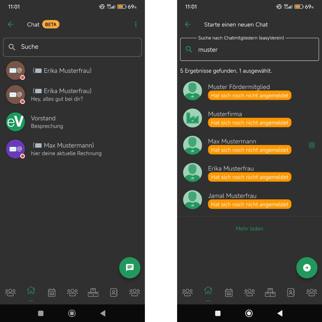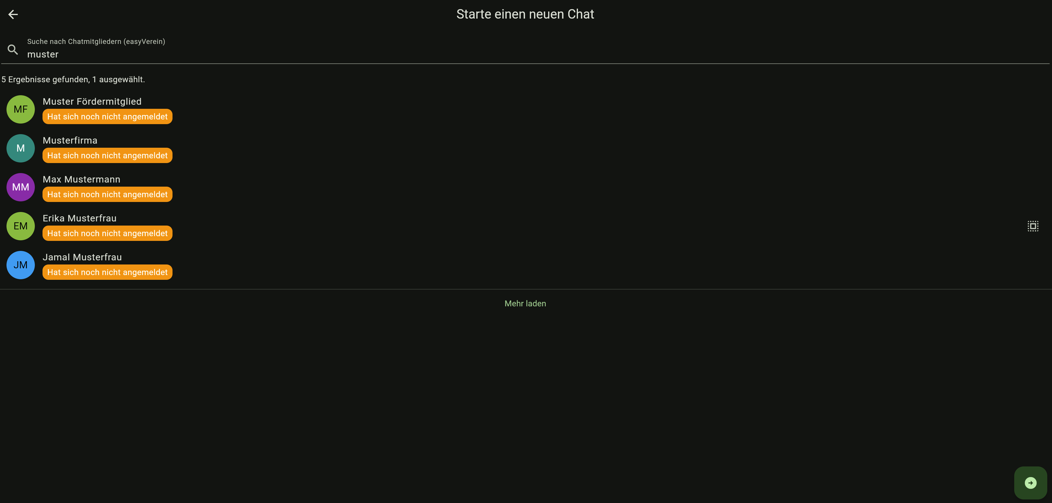 Der neue Chat ist direkt einsatzbereit und euer Chat-Partner erhält die Einladung als Push-Benachrichtigung auf die easyVerein-App.